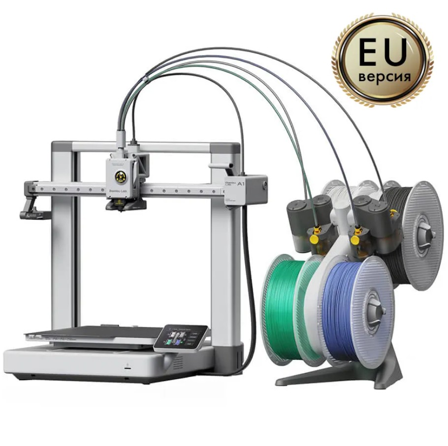 В комплекте идёт модуль AMS Lite, позволяющий работать с 4 катушками (разные цвета или материалы) в одном проекте, автоматически загружая и разгружая филамент без ручного вмешательства.