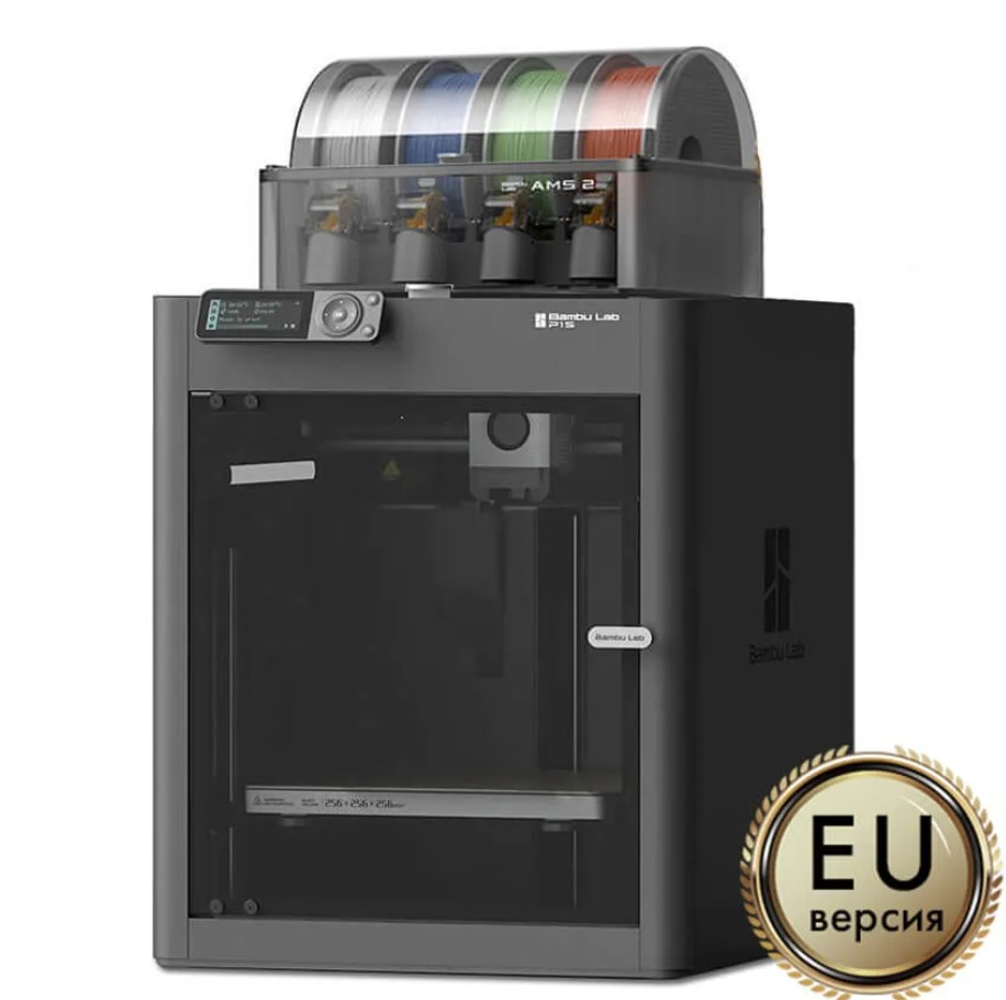 Поддержка AMS / AMS 2 Pro (в комплекте у версии Combo) — это многоцветная и многоматериальная печать с 4‑контейнерной системой сушки и автоматической подачи филамента.