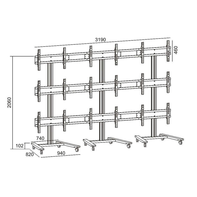 Panorama 900 - Стойка для видеостены 3x3 мобильная, 9xДисплеев 30-55", 9x40кг, VESA 800x400 макс, 3190x2060мм, цвет черный
