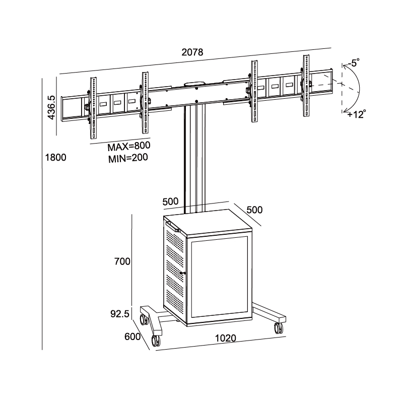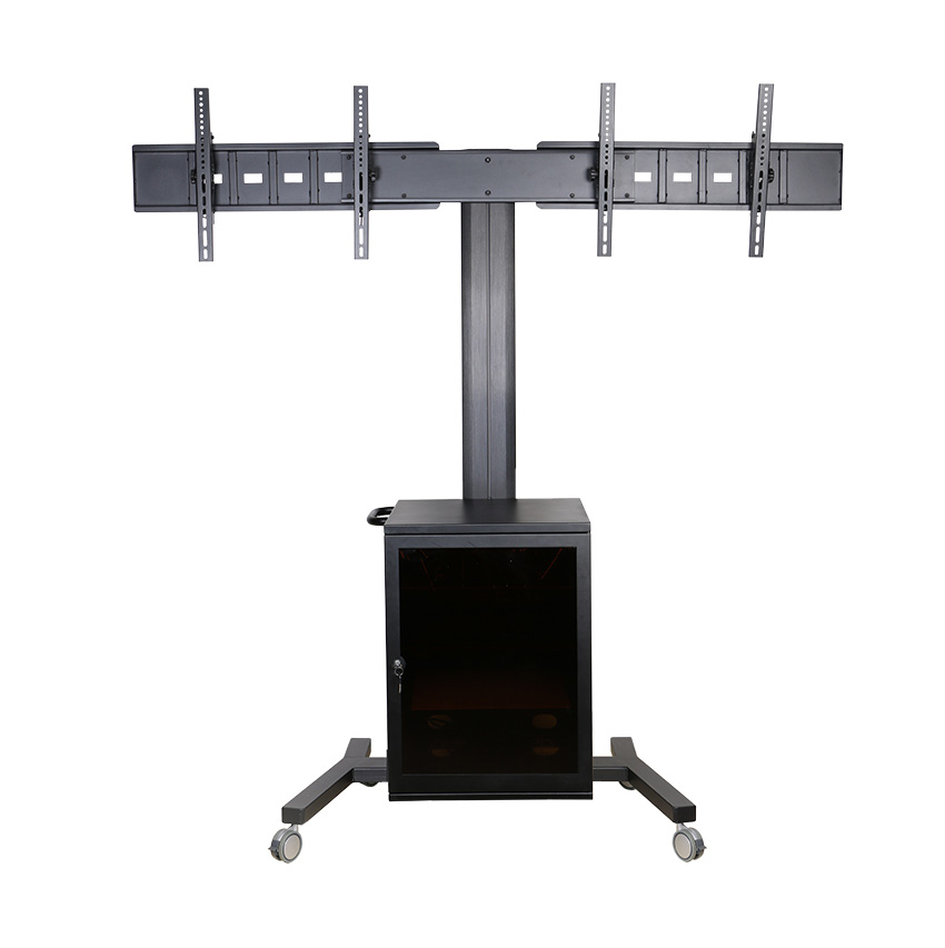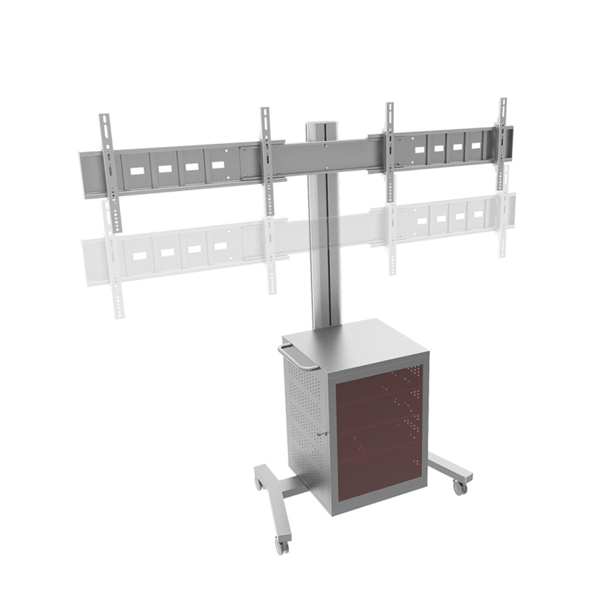 MediaPro 1200 - Мобильная стойка для 2xДисплеев 30-60", 2x60кг, наклон -5°+12°, VESA 800x400 макс, тумба для оборудования 700х500х500мм, высота 1800 макс, цвет черный